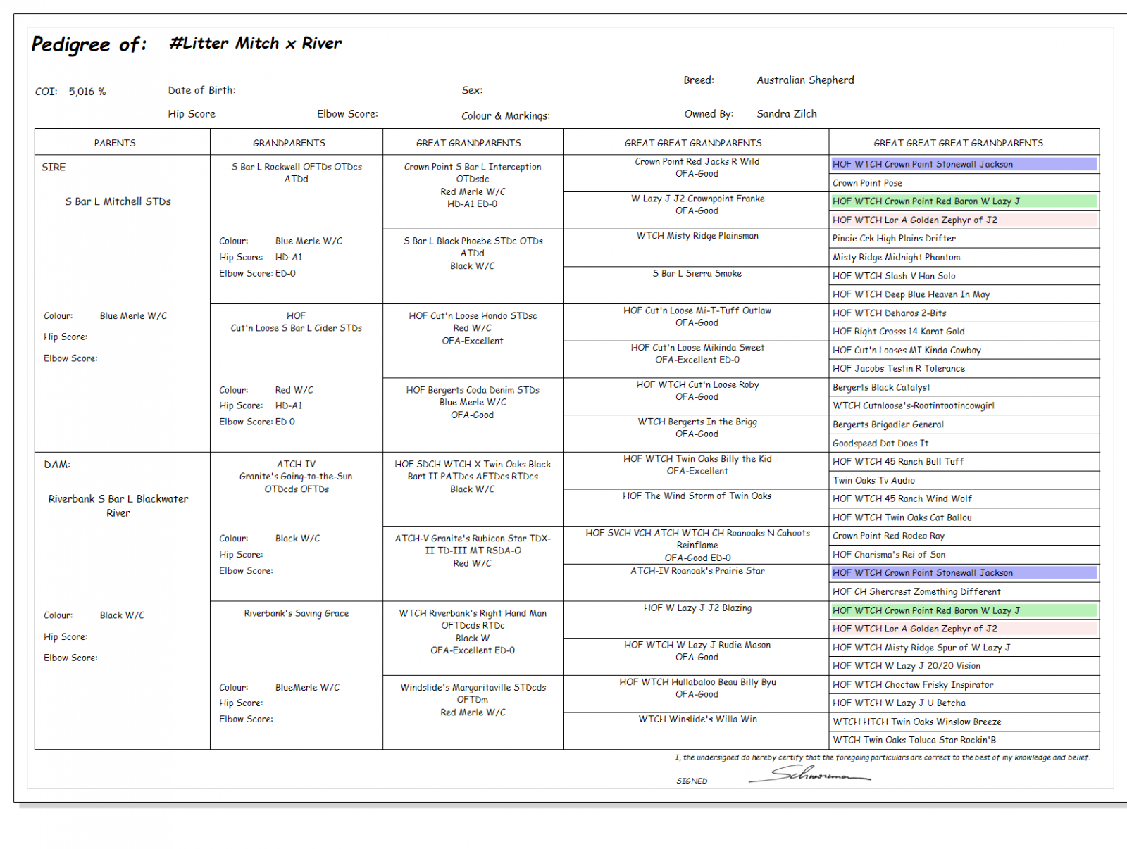 Pedigree des Wurfes: