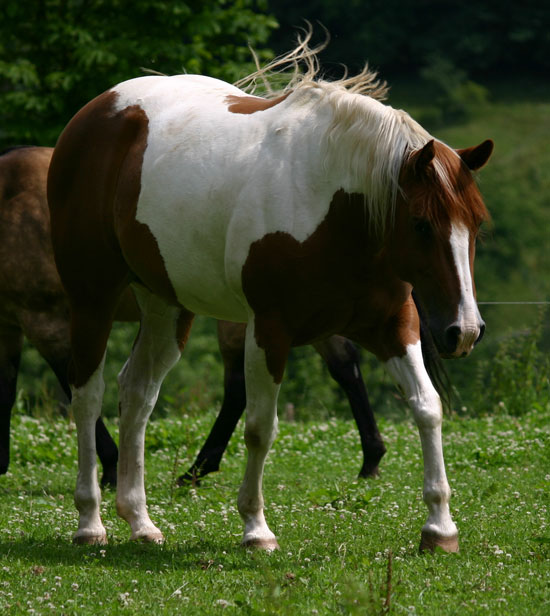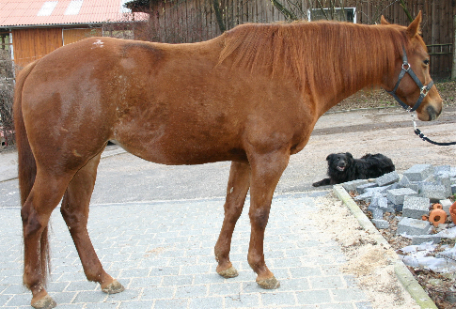Becky war lange Einstellpferd bei uns und wir haben sie übernommen. Seitdem genießt sie ihr Leben als super spitzen Herdenführerin. Da Einstellpferde ja öfter mal kommen und gehen und wir immer mit Becky gelitten haben wenn mal wieder einer ihrer Freunde ging, sind wir nun umso glücklicher dass sie mit Lena, Tari und Buffy und Pie nun wieder eine „stabile Beziehung“ haben kann. Becky wird nicht mehr geritten.