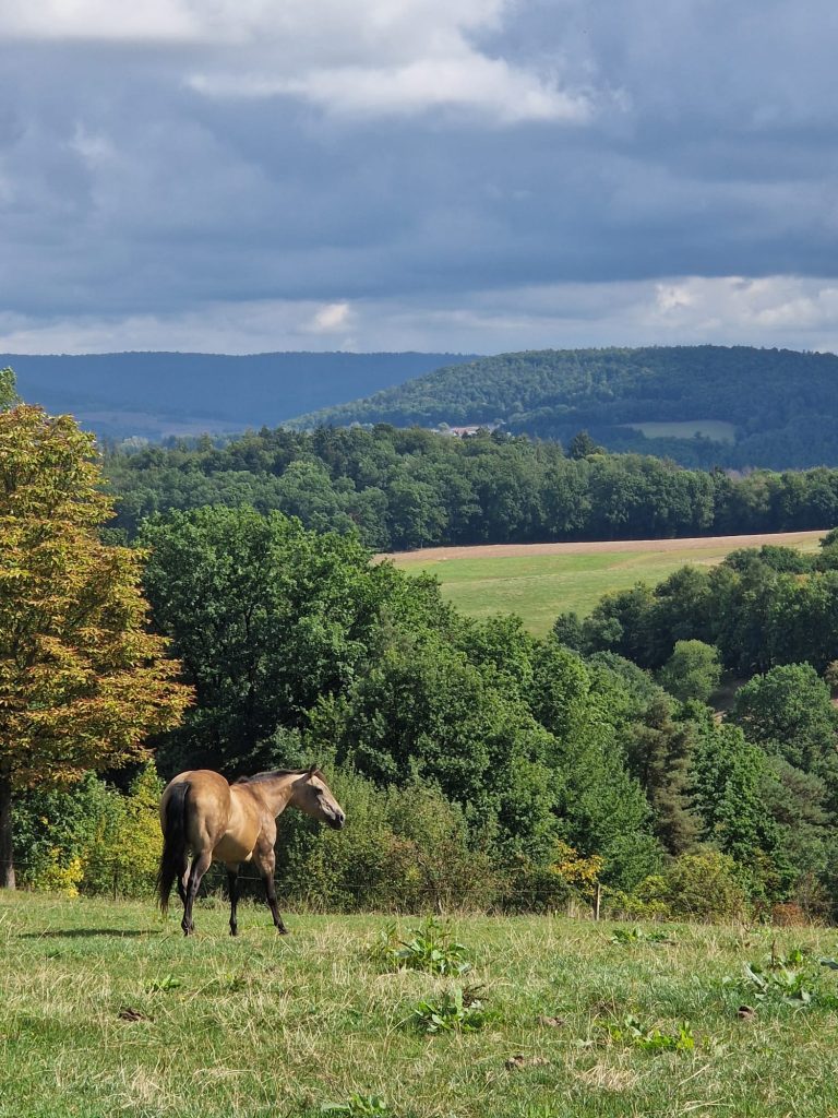 Und last but not least hat uns eine Fuchstute bei einem anderen Züchter so gefallen, dass sie nun unsere kleine Stutenherde komplett macht. Pie.